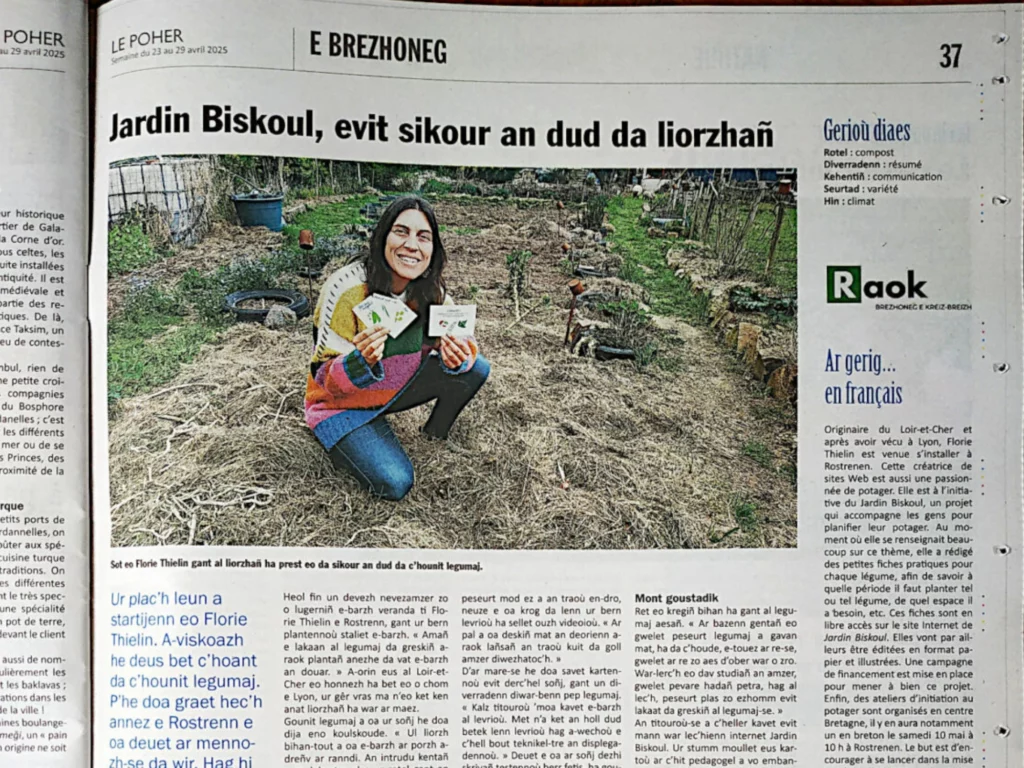 Florie a besoin d’explorer la théorie avant de passer à la pratique. Alors quand elle s’est mis au potager, elle s’y est mis à fond et partage ses découvertes sur ce site internet (qu’elle a créé, c’est son métier!). Si ça peut être utile à d’autres, alors tant mieux! Elle aime beaucoup l’idée de nourrir l’intelligence collective, vulgariser, transmettre de manière ludique. Florie a appris le breton via une formation Roudour en 2023 🤓