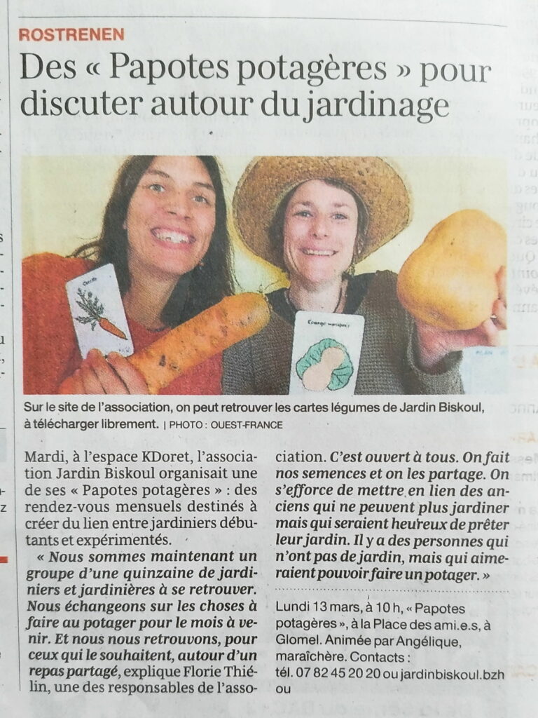 Dans Ouest France – mars 2026 Des « Papotes potagères » pour discuter autour du jardinage.Mars 2026, article écrit par Marc Marillesse ➔ Lire l’article