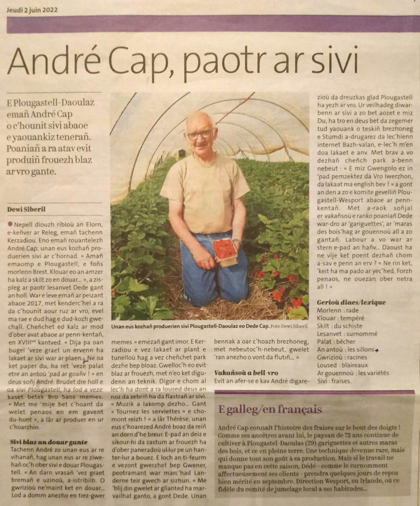 Rannañ a ran ganeoc’h pennadoù gazetennoù hag a gomz diwar-benn al liorzh pe an natur. Un doare mat evit pleustriñ ar yezh hag ar c’heriaoueg tro-dro an temoù-se ! (Mersi da Fañch gant piv e oa dastumet !)